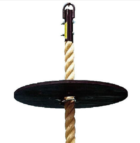 Many uses include limiting climbing heights for age, skill, and testing concerns. Popular in facilities with high ceilings. Prevents climbers from reaching attachment hardware. 24″ diameter 1/2″ plywood with fitting for easy height adjustment.