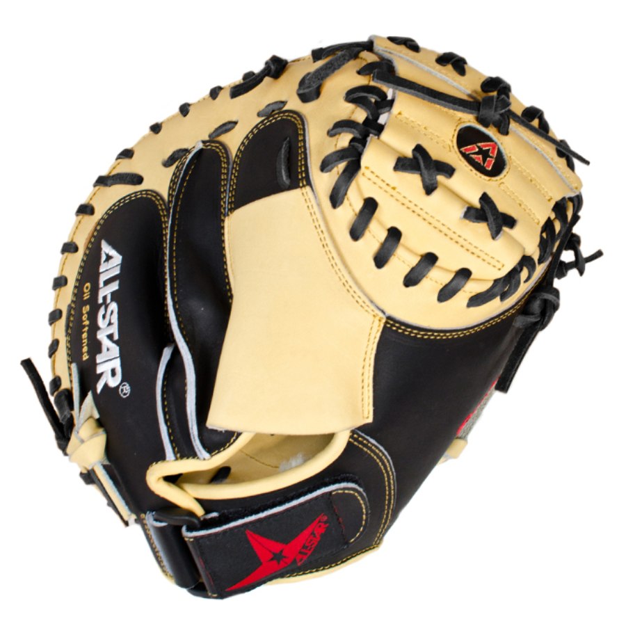 The All-Star Pro Advanced Catchers Mitt is great for advanced catchers in high school and college. It's built with premium materials that make it a durable and comfortable mitt for each player. The best way to break in the mitt is to just use it rather than putting something on it (including steam), because then the life of the mitt will be longer. Size 35".