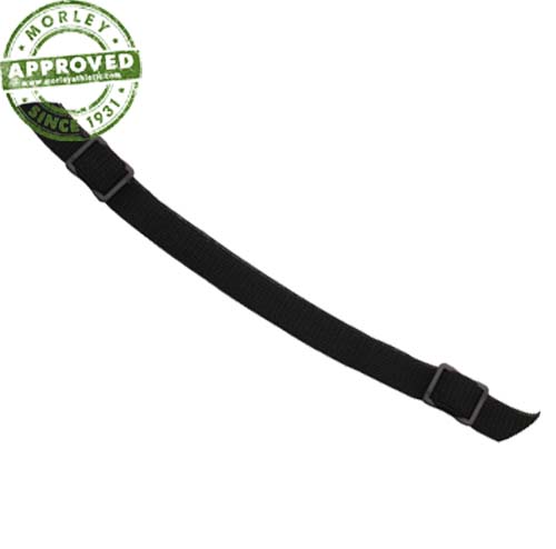 This batting helmet chin strap comes with plastic snaps on an elastic strap. It is one size fits all adjustable. Black only. Sold by dozens.