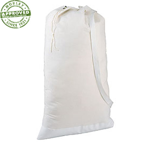 This Canvas Equipment Bag features durable 12 oz canvas with a shoulder strap. Reinforced vinyl bottom. Inside pocket. White only. 23” x 42”.