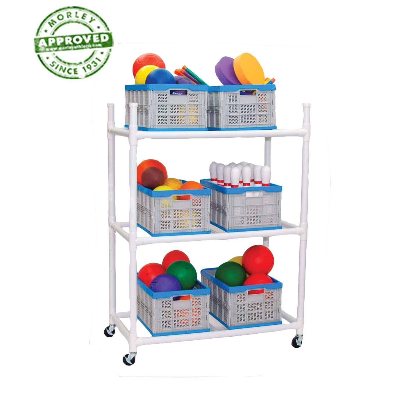 This Carry All ABS Cart is made of durable ABS plastic and features 3 tiers with 2 heavy duty storage baskets each. removable baskets are perfect for smaller items in physical education classes. Comes complete with4 heavy duty swivel casters that have pedal locks to keep the cart where you want it.