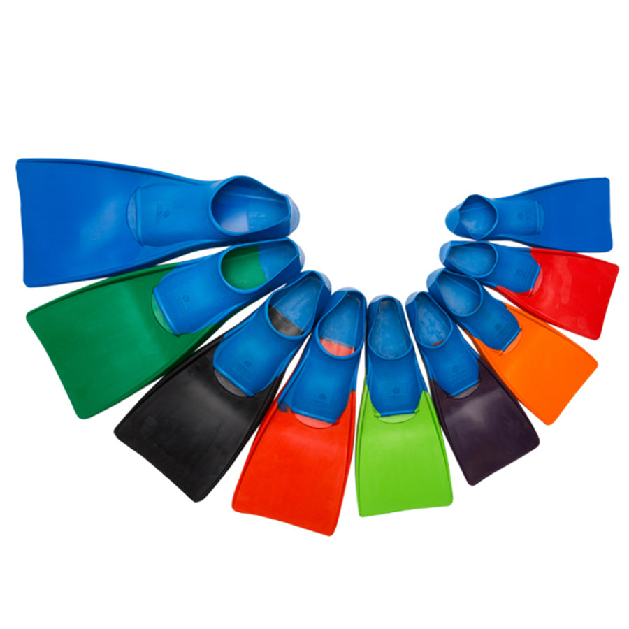 Swim fins are a great training aid and they're just plain fun to use. They assist with building power and speed and allow you to train in multiple ways. These swim fins make a life a bit easier by being color coded by size. Available in a full selection of sizes they're perfect for your swim program whether it's a competitive program or just a learn to swim program. Floating fins are more popular than other models and are made to last.