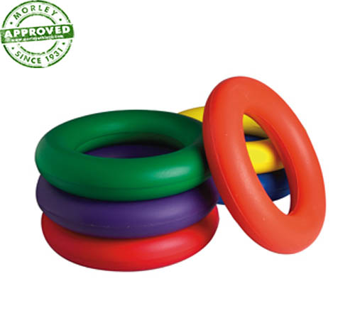 Deck Tennis Rings are sponge rubber deck tennis rings. Set includes 2 of each color: blue, green, orange, purple, red & yellow. Sold in sets of 12.