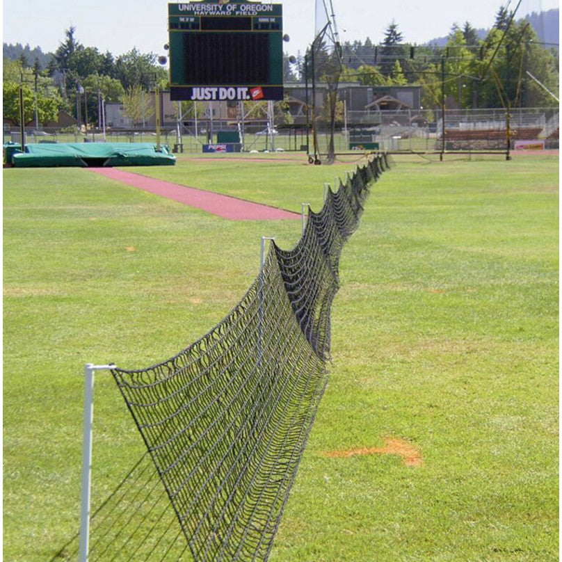 This 731135 Discus Sector Net is made of 340lb. break strength net and stands 2’ tall x 60’ long. Held by 3/4” diameter steel net poles and ground stakes. Effectively stops shot or discus from rolling or skipping outside of the throwing sector. Use one net to cover the shot put sector. Use 3 for the discus sector. Polyethylene net spools included for convenient storage and handling.
