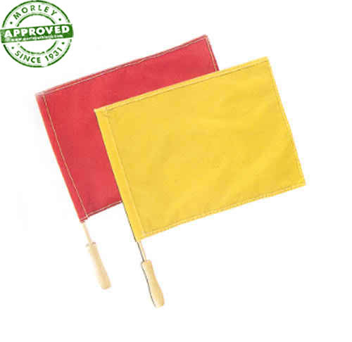 These official Economy Lineman Flags are complete with hard wood handles. Each set includes 1 each fluorescent red & yellow flags as pictured.