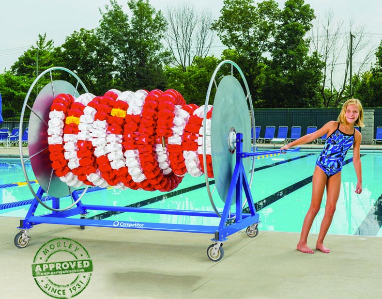The Elite Stor Reel™ is a high-capacity Elite product that features a powder-coated aluminum frame and end-wheels for durability. A unique, end-mounted handle offers easy towing. 6-inch stainless steel casters with individual brakes provide smooth and safe maneuverability. Dimensions: 83”x60”x71” Weight: 162 lbs Capacity: Holds 902 feet of 4-inch lanes and 450 feet of 6-inch lanes.