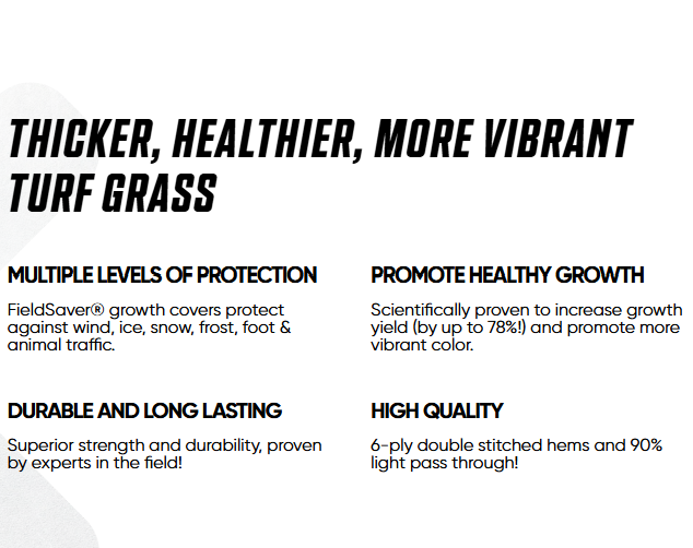 Promote faster growth and green-up in the spring when you choose Fieldsaver winter growth covers. With our football turf blankets the soil is warmed naturally by retaining heat and moisture, while simultaneously allowing light to pass through. The grass will truly be greener on the other side of your football turf covers!