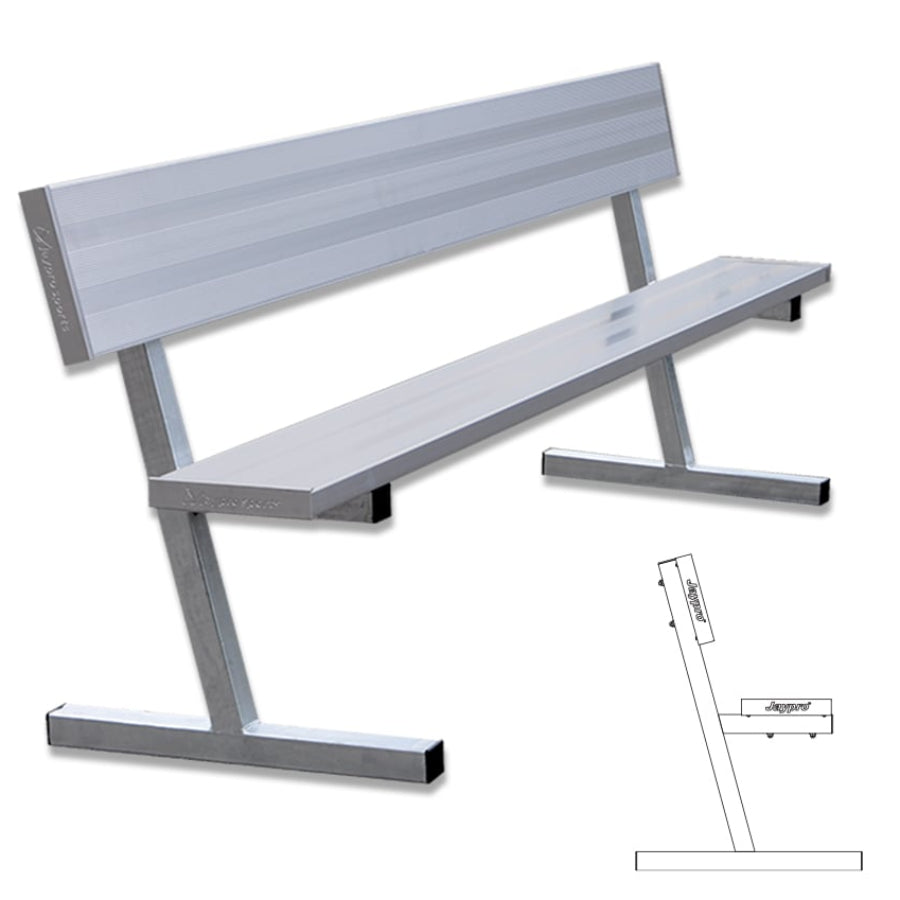 This portable players bench with a back from Jaypro provides a durable and secure seating option for athletes and spectators. Made with galvanized steel, this bench is built to withstand any weather conditions and provide long-lasting support. The back of the bench helps to maintain support for your back while sitting. Perfect for sports fields, parks, and schools.