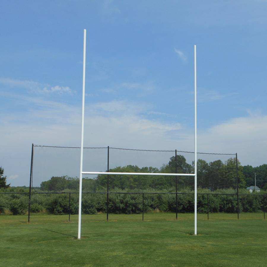Introducing the Jaypro RGP-3 Permanent White Rugby Goals. These goals are designed for a professional and permanent installation, making them the perfect addition to any rugby field. Made with durable and sturdy materials, these goals are built to last and provide a tough powder coated white finish. At 32 ft.H (9.8m) x 18 ft.4 in.W (5.6m), they are the official size for a regulation rugby game. Experience the game like never before with these top-of-the-line goals.