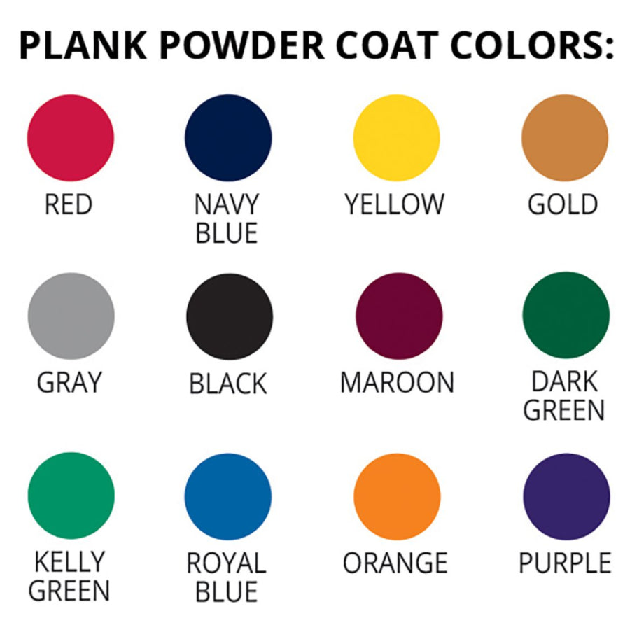 - See chart for powder coated colors (specify plank and leg colors when ordering. The default leg color is gray unless otherwise specified.)