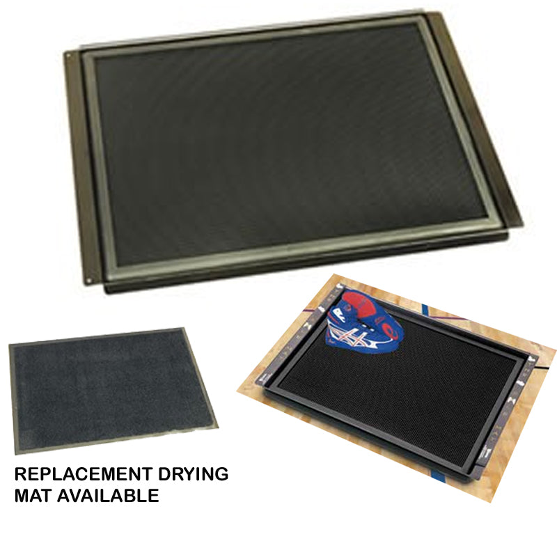 - The sole mat sits in a steel tray and comes with a 24" x 36" drying mat.