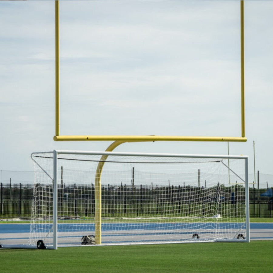 The 2B3906 Fusion® 120 Soccer Goal meets NCAA and NFHS standards. The 2B3906 Fusion® 120 Soccer Goal is designed specifically for the combo football/soccer field. With an aluminum back bottom bar slotted at 5’ from the front posts, the Fusion® 120 Soccer Goal will slide neatly in front of almost any set of football uprights. The entire frame of the 2B3906 Fusion® 120 Soccer Goal is 4” round aluminum, and the goal is all-surface friendly as the net clips into the Kwik Lock® Net System around the entire frame. The 2B3906 Fusion® 120 Soccer Goal includes 4 wheels per goal, increasing ease and safety of movement.