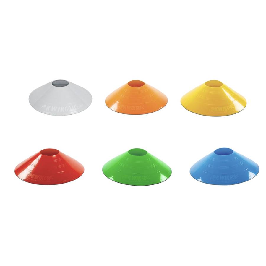 Kwik Goal Small Disc Cones are one of the most popular items in training and a mandatory part of any coach's equipment arsenal. These cones measure 2" tall with a 7-1/2" diameter base. Kwik Goal small disc cones are available in eight colors and are sold in packs of 25 by color.
