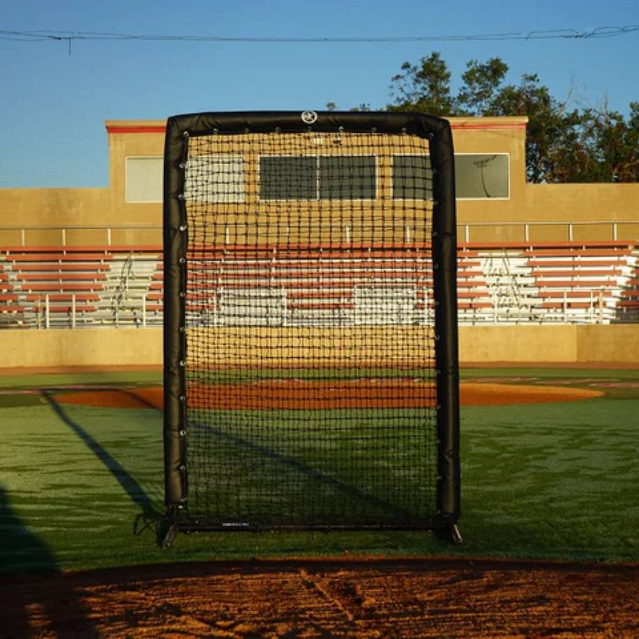 The Muhl Tech Premium 6x4 Safety Screen offers superior durability and stability compared to standard screens. Its 1.5" powder coated steel and one piece padding make it strong enough to withstand intense batting practice. The UV weather treated #60 braided net provides double protection, while the ample 6'H x 4'W size allows for comfortable pitching and movement in the batting cage. Plus, with gusset welded legs for added durability, this screen is built to last.