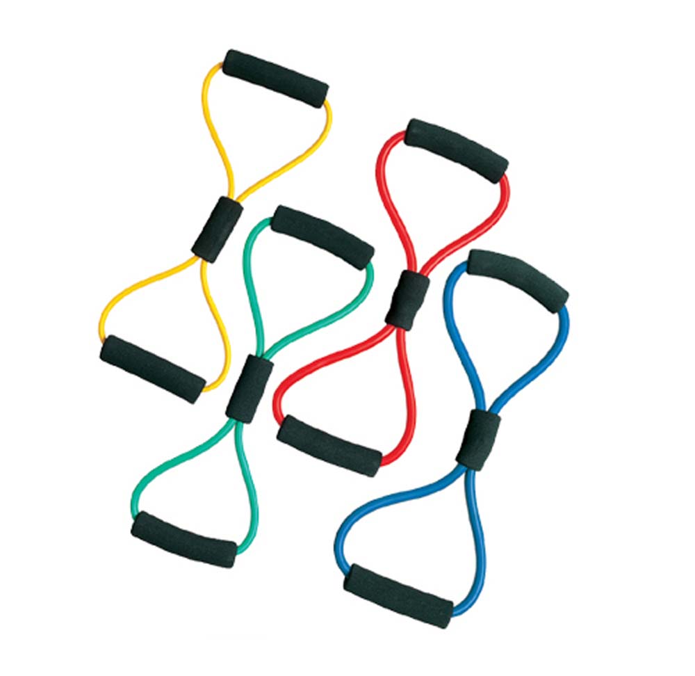 Muscle Toner Loops have cushioned grips and centers. Great for strengthening biceps and triceps. Available in four resistance levels as listed below.