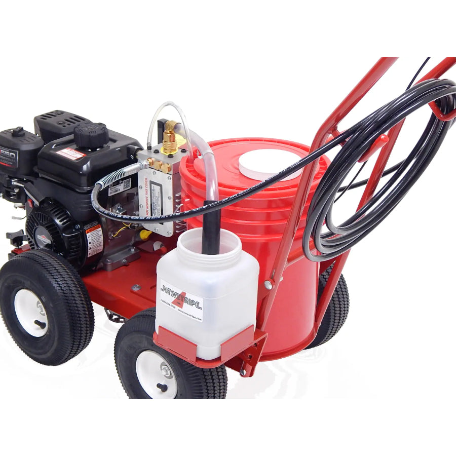 The NewStripe 1-Gallon Cleaning Tank, Part# 10004831 / 10004832, is a great accessory to add to your NewStripe Striping Machines. You can conveniently clean your spray gun and hoses out on the field whenever necessary.
