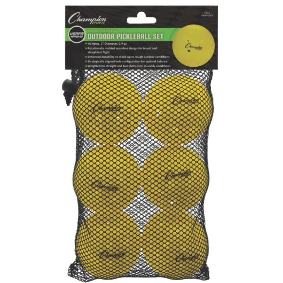 The Champion roto molded pickleball set is perfect for any game with players of any skill level. It's seamless, durable, made of hard plastic, and has 40 holes. The ball is "rotationally molded" from a single chunk of hot plastic that is placed inside a hollow rotating mold under lower pressure until it completed melted into the wall of the mold.