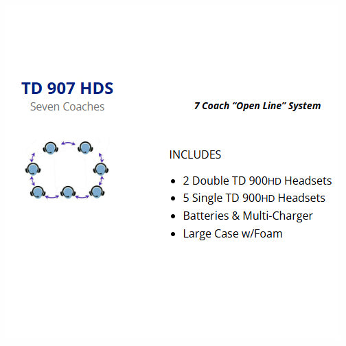 Your complete Single Channel system comes with everything you need right out of the box including TD 900HD wireless headsets, Case, Batteries and Multi-Charger. To Start up your set just install the batteries, turn the headsets “ON” and talk, it’s that simple.
