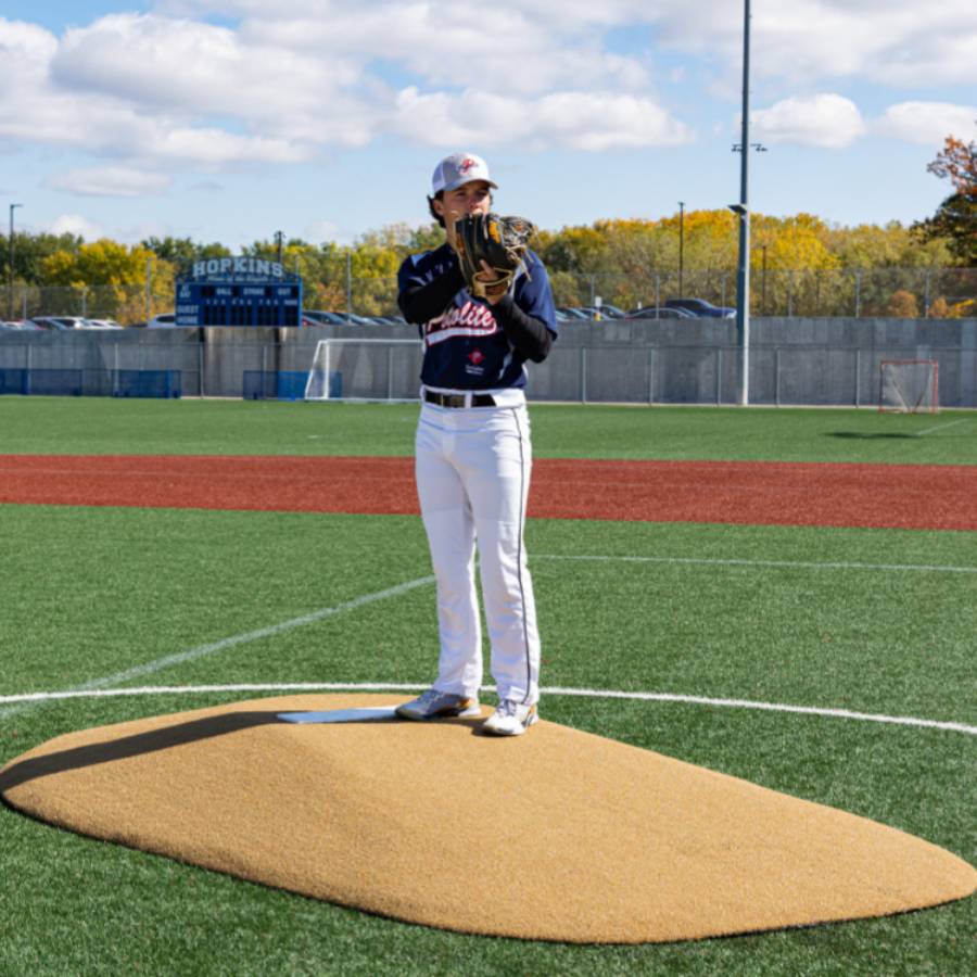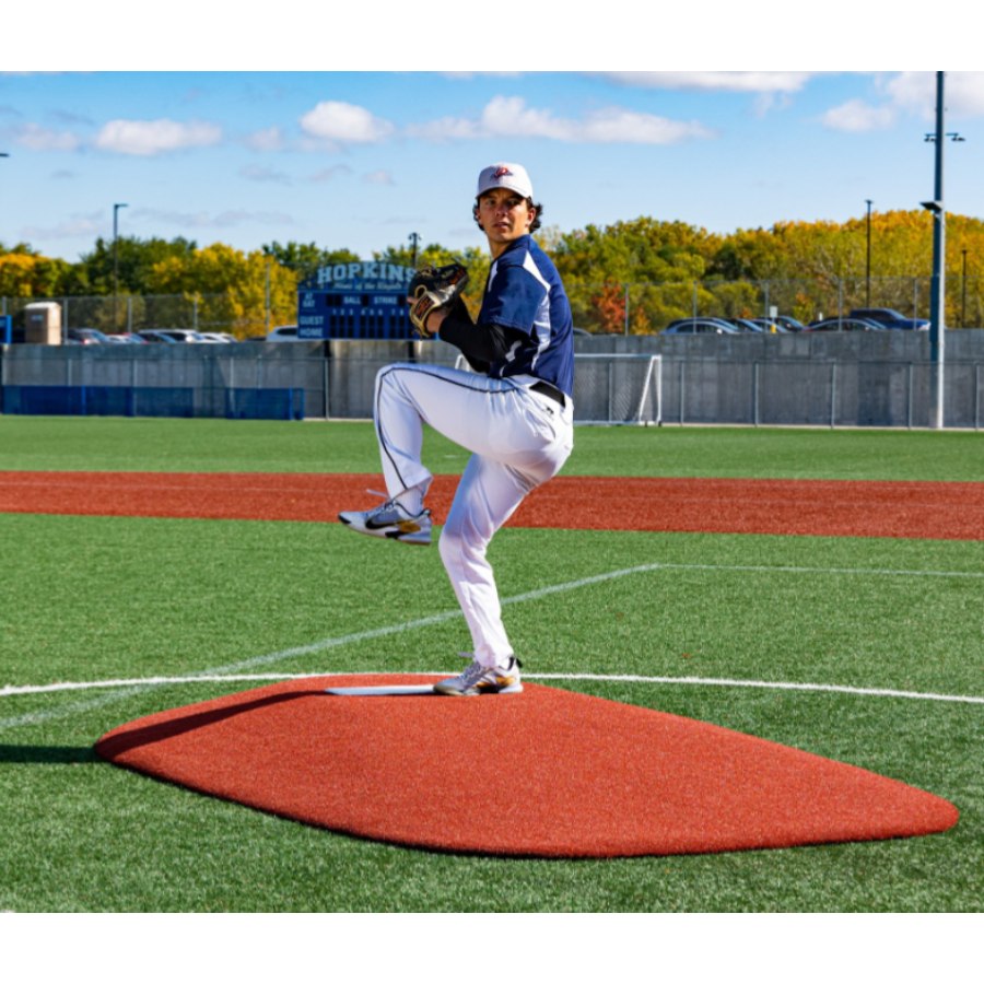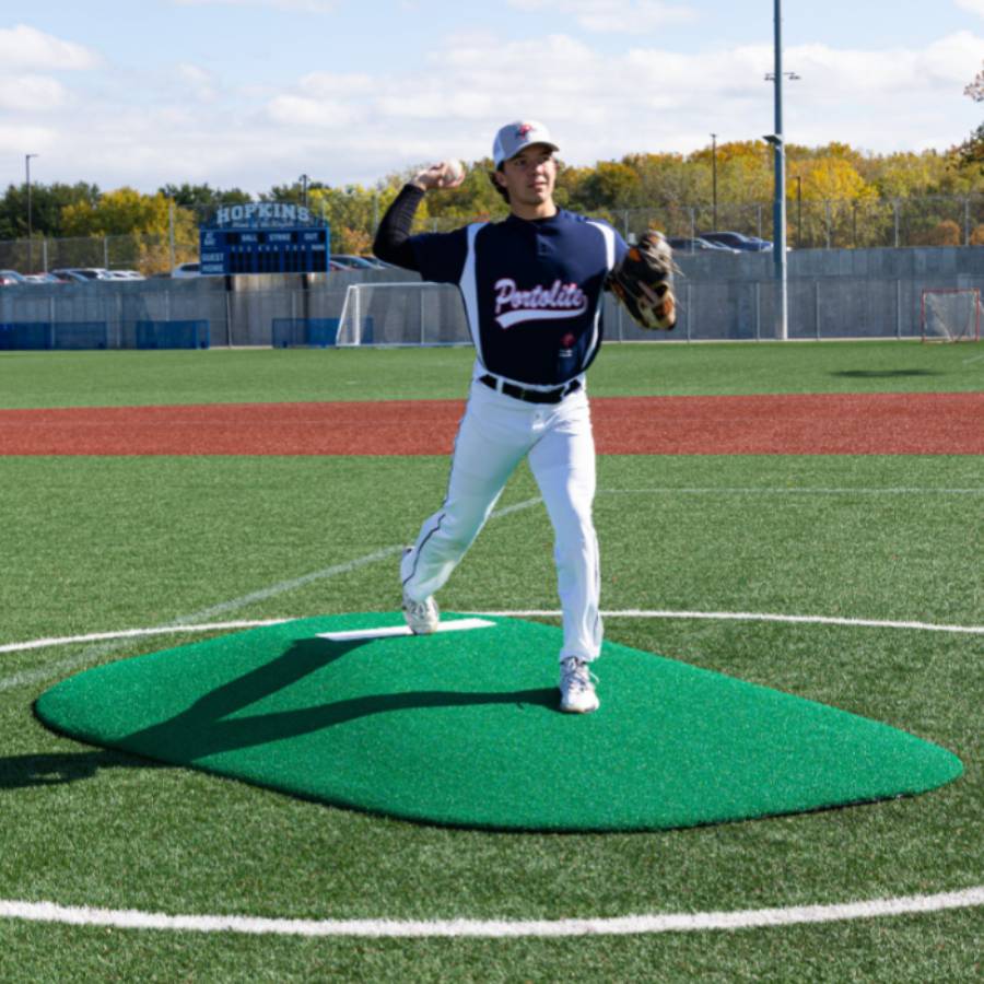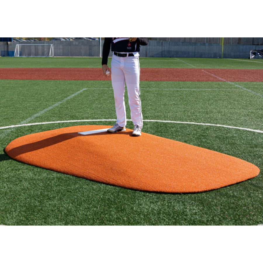 The Portolite one-piece game pitching mound is perfect for making sure pitchers get the feel of a regulation baseball mound. This mound was built to last with a high performance poly protected resilient core with fiberglass reinforcements for a solid, no bounce, yet cushioned mound that reduces knee and ankle strain. Gentle slopes and tapered edges help give pitchers the highest level of comfort.