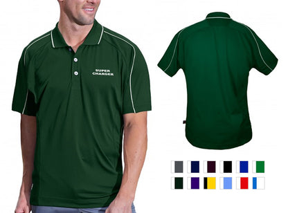 Pro Celebrity® Super Charger Men's Polo Shirt is one of our most popular styles and is back and better than ever! This new fabric is resistant to snags! The white piping on the body and the tip trim on the collar are just enough to set this understated polo apart. Set in sleeves allow for easy movement. Rib-knit collar resists curling. 3-crystal button placket.