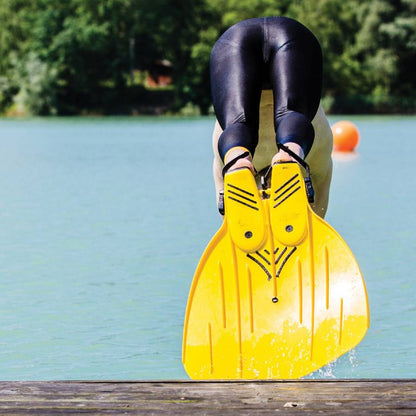 The Rapid Adult Recreational Monofin is a versatile and efficient swimming tool for teens and adults. Featuring a large single-blade design, it promotes proper undulation and provides a great core and leg workout. With its flexible blade, users can swim at greater speeds and depths, making their experience more enjoyable. The monofin can be used in different bodies of water and comes with adjustable heel straps for a secure and comfortable fit. For added safety, it also includes quick-release foot straps.