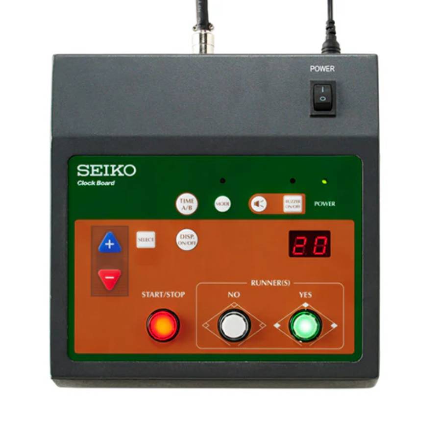 Introducing the SEIKO BT-401 Indoor Baseball Pitch Clock, designed by industry experts. Featuring intuitive push buttons for easy use and high-visibility LED digits, its 9.84" display provides clear visibility on preset countdown times of up to 99 seconds for runners on and bases empty. Plus, a small display in the control box and buzzer with the option to turn off sound makes for a professional and non-disruptive experience.