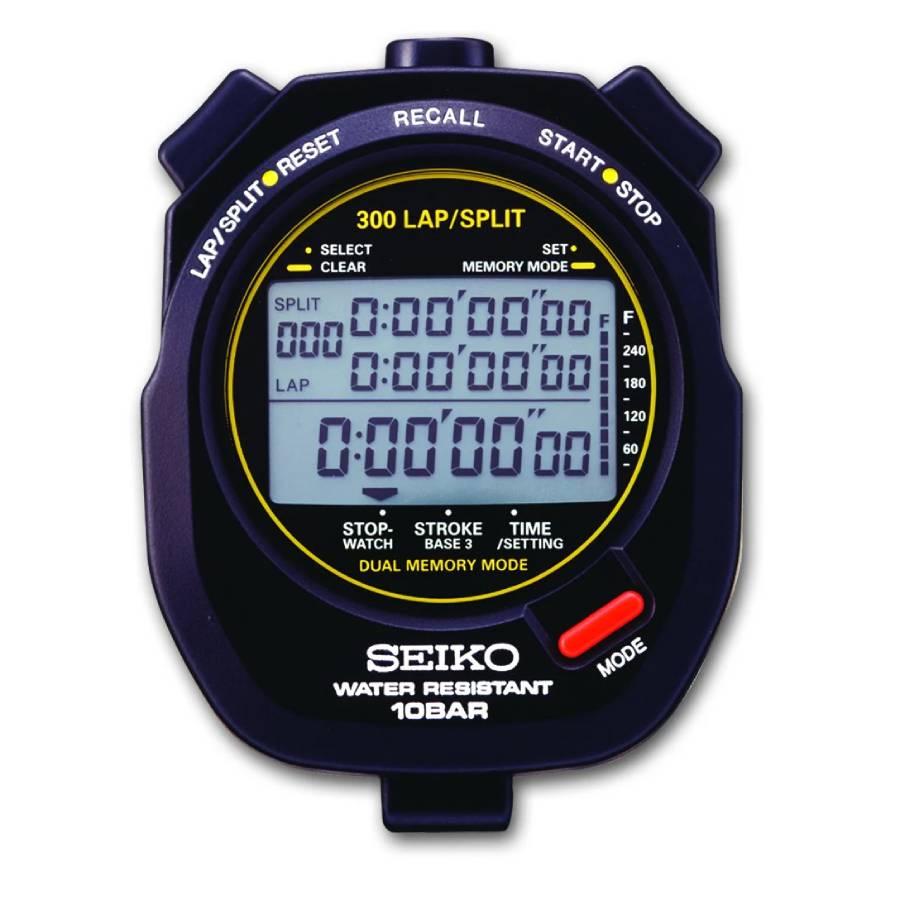 As a product expert, SEIKO S141 300 Lap Memory Stopwatch For Aquatic Sports offers precise measurements up to 10 hours in 1/100 of a second. With dual memory mode, easily store and recall up to 300 split/lap times, segregated by event. Monitor strokes per minute for sports like swimming and rowing on the large three row display.