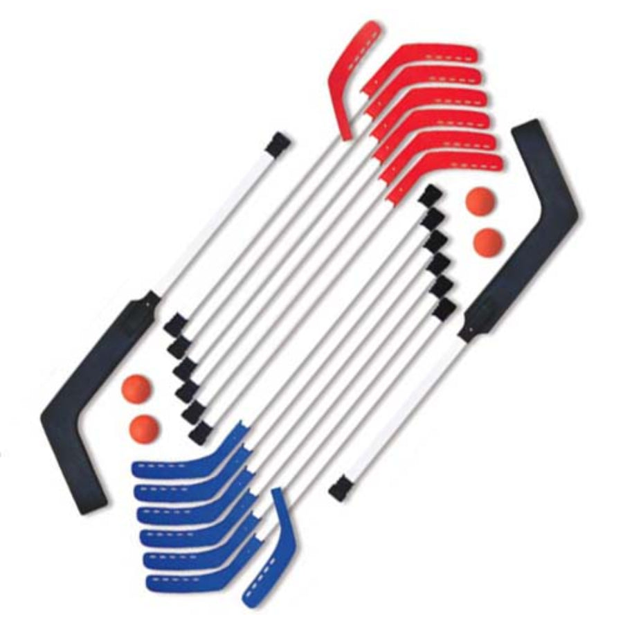 This Shield Deluxe Plastic 42" Floor Hockey Set features patented ABS plastic shafts and long lasting, reinforced ribbed blades make this set of unmatched quality. This is a great INDOOR floor hockey set for your middle school students.