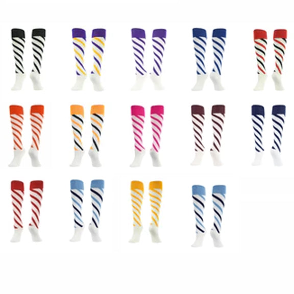 Candy Stripe Heel & Toe Soccer Socks in your favorite flavor. Materials: 43% Cotton, 36% Acrylic, 11% Nylon, 10% elastic
