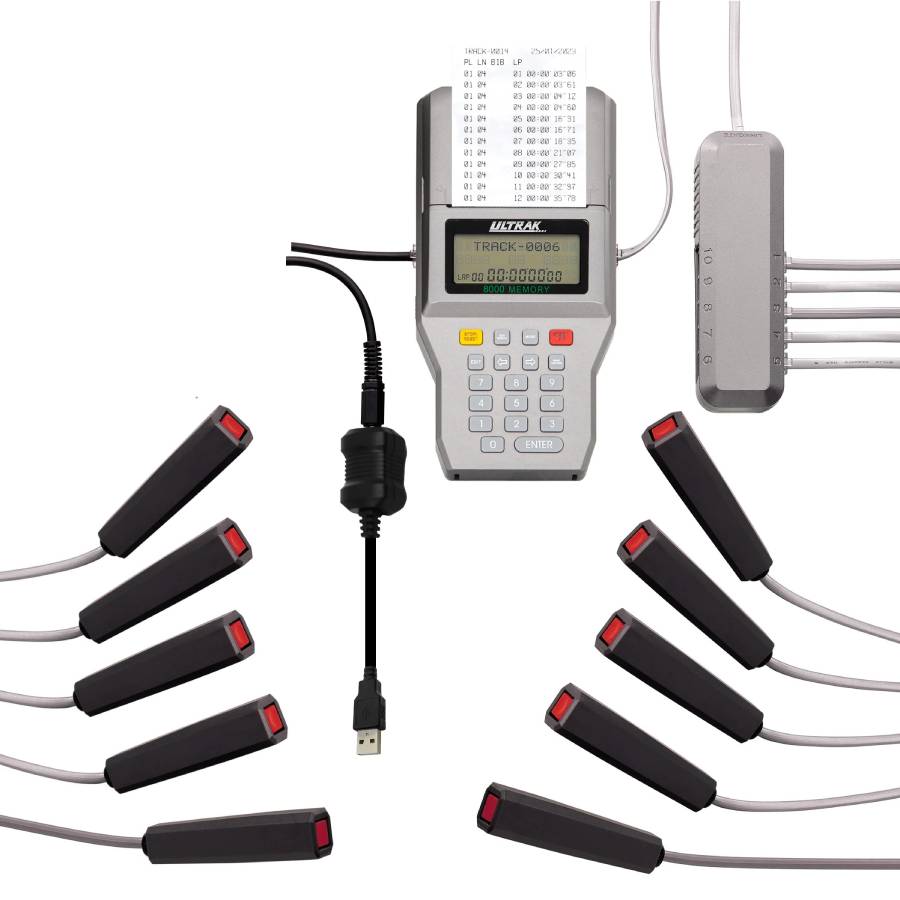 The Ultrak L20 multi-lane timer is a super popular choice for track races. This is the next generation, updated version of the well known L10 multi-lane timer and operates in the same fashion with a few upgraded features. This timer can be used to time track races with up to 10 lanes as well as road races with up to 8,000 participants. A linkgate is provided which connects the ten lane buttons to a separate unit, eliminating tangles wires to the lane timer itself. Four digit bib numbers can be pre-assigned to lanes in track mode and entered at the finish for road races. Data can be uploaded to a PC or printed out during or after an event for later review. The Ultrak L20 is also compatible with Hy-Tek, RunScore, easy Meet Manager, and other software programs.