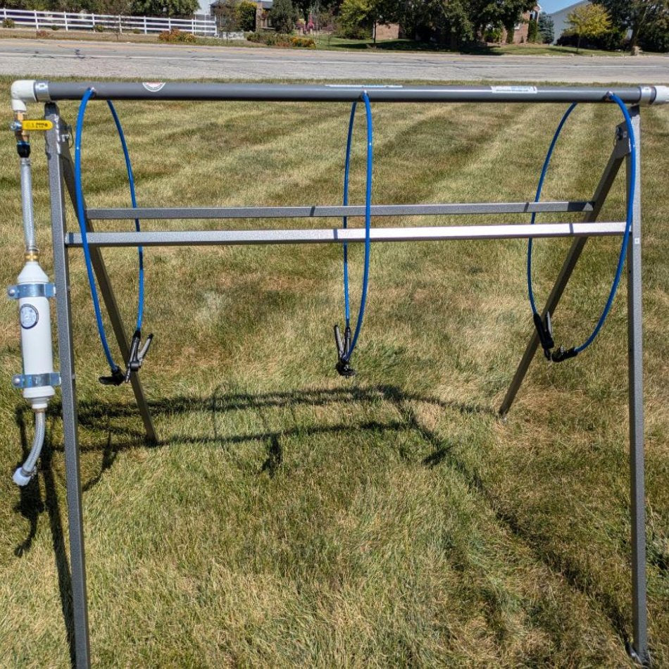 - 6 drinking nozzles on 3 ft hoses on a 55” manifold. Hoses are blue to help prevent mold /algae. Fittings and hoses are food grade.